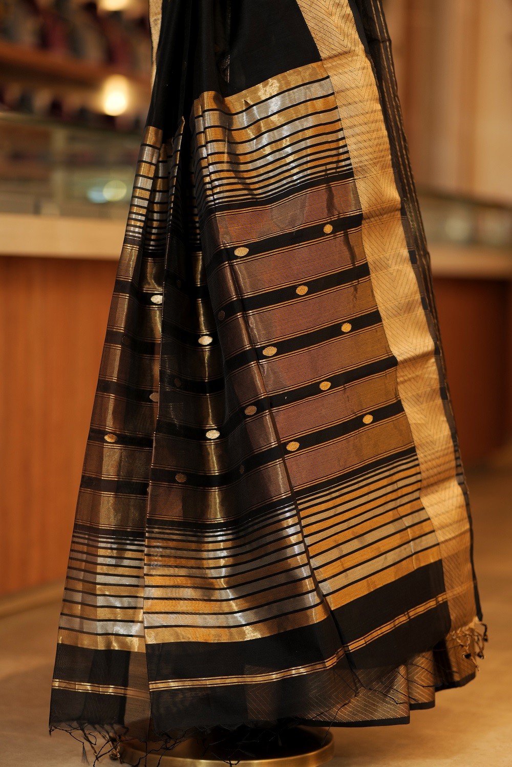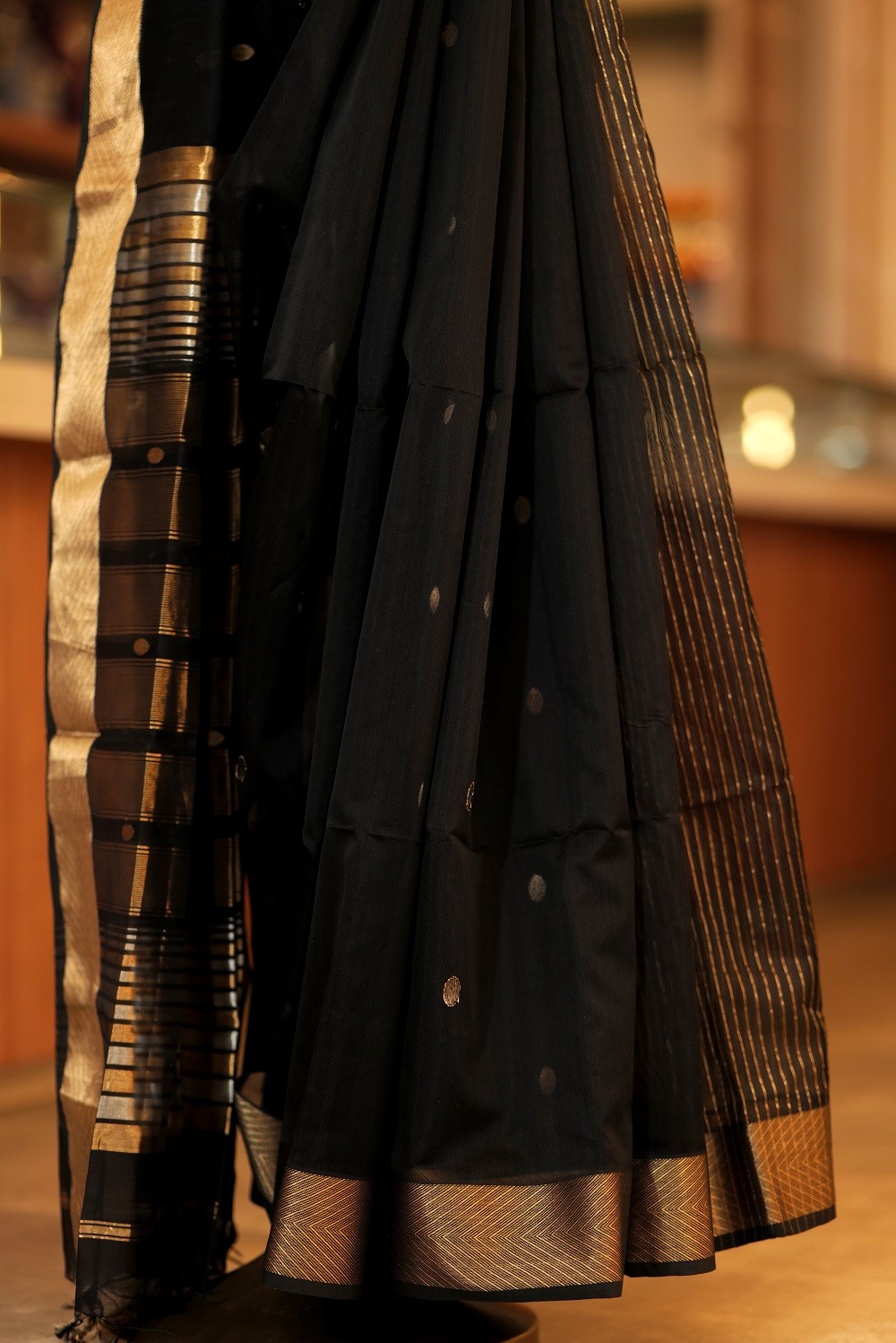 • Color: Midnight black with antique gold zari